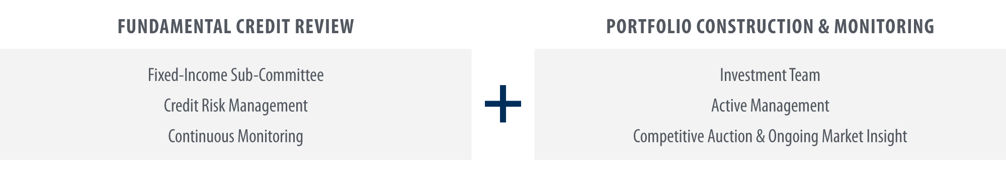 The fixed income sub-committee of First Trust’s Investment Committee conducts a fundamental credit review each month, evaluating the creditworthiness of the issuers. This ensures high credit quality and allows us to swiftly adapt to any changes in market or issuer conditions. Structured investment issuers are continuously monitored for their credit health.