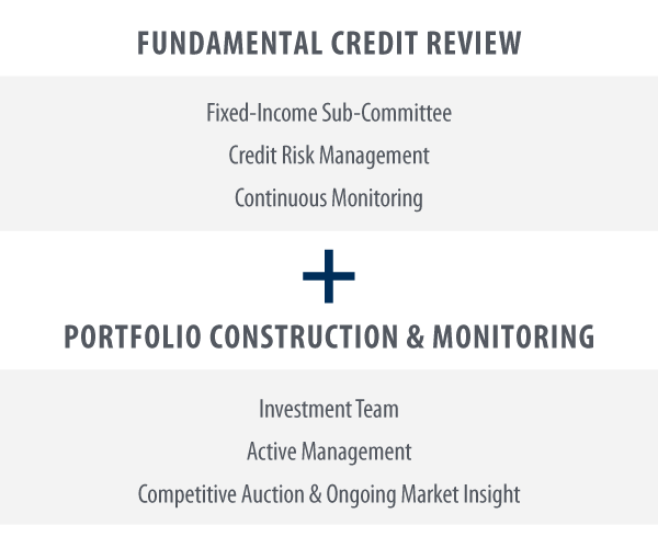 The fixed income sub-committee of First Trust’s Investment Committee conducts a fundamental credit review each month, evaluating the creditworthiness of the issuers. This ensures high credit quality and allows us to swiftly adapt to any changes in market or issuer conditions. Structured investment issuers are continuously monitored for their credit health.
